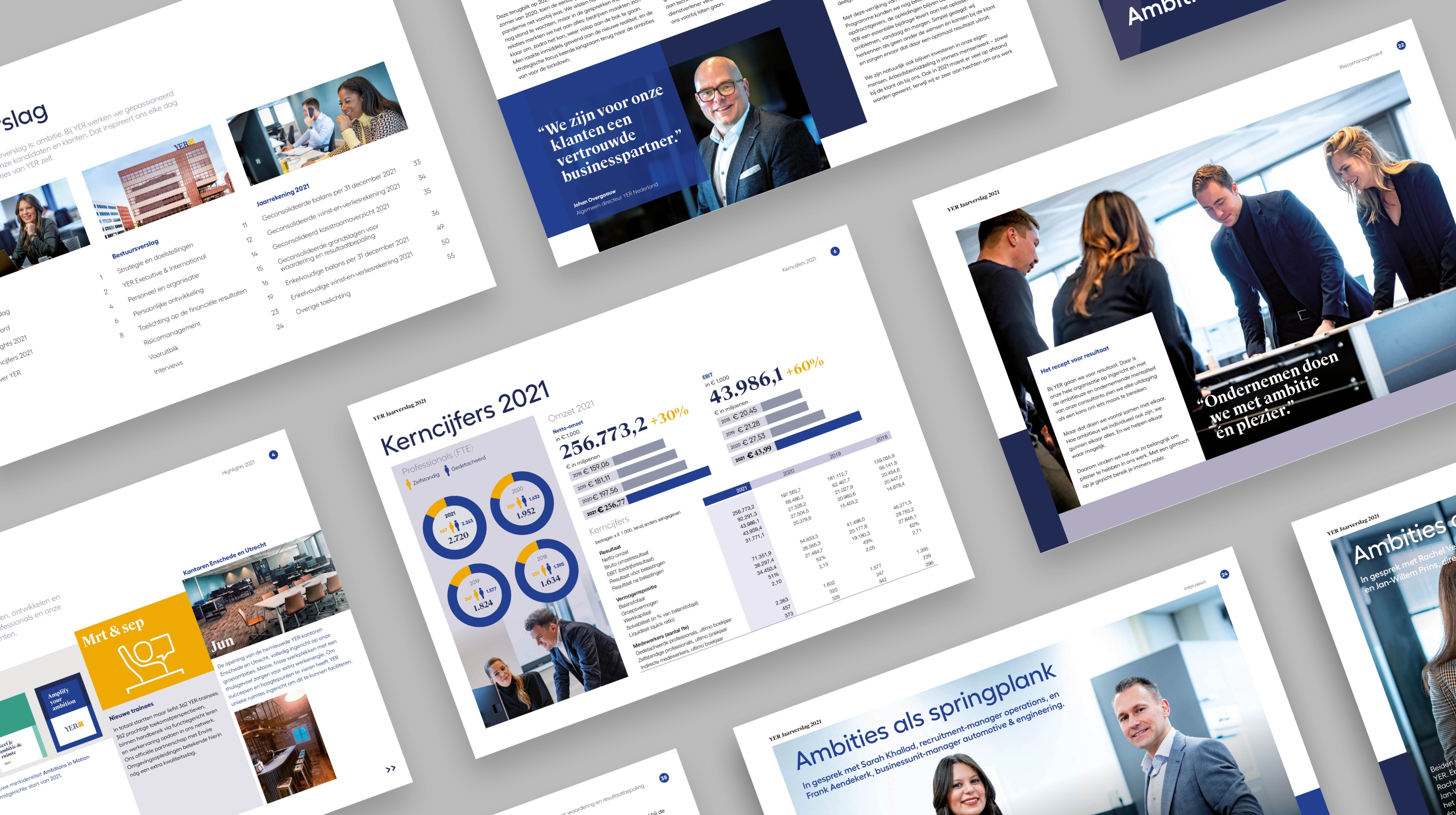This year's theme, ‘Ambition in motion’ is widely showcased within the annual report, consisting both of many more interviews and new photography, highlighting YER's professionals and their ambitions as the backbone of the company.
